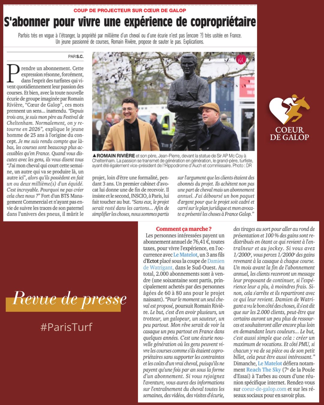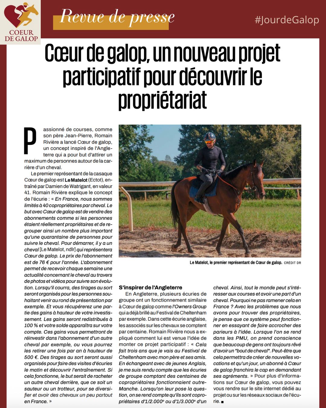 Le célèbre quotidien consacre un article à Cœur de Galop, saluant “une initiative qui dépoussière les codes” et “rapproche le public des acteurs du turf”.